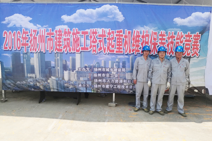 2016年7月31日,揚州市城鄉(xiāng)建設(shè)局、市總工會、市人力資源和社會保障局聯(lián)合主辦的建筑施工塔式起重機維保技能競賽在我集團設(shè)備租賃分公司院內(nèi)舉辦,全市共9支代表隊參加競賽。我集團占德華、劉志全、張宏生組成的代表隊獲理論考試與技能操作競賽第一名,同時獲得參加省級競賽的資格。