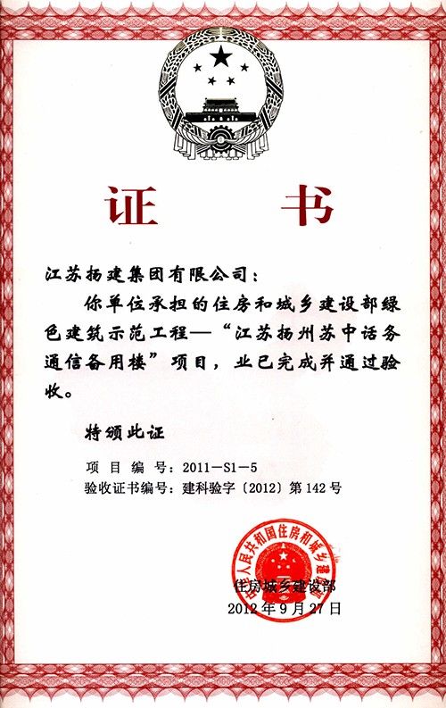 住房和城鄉(xiāng)建設部綠色建筑科技示范工程1項